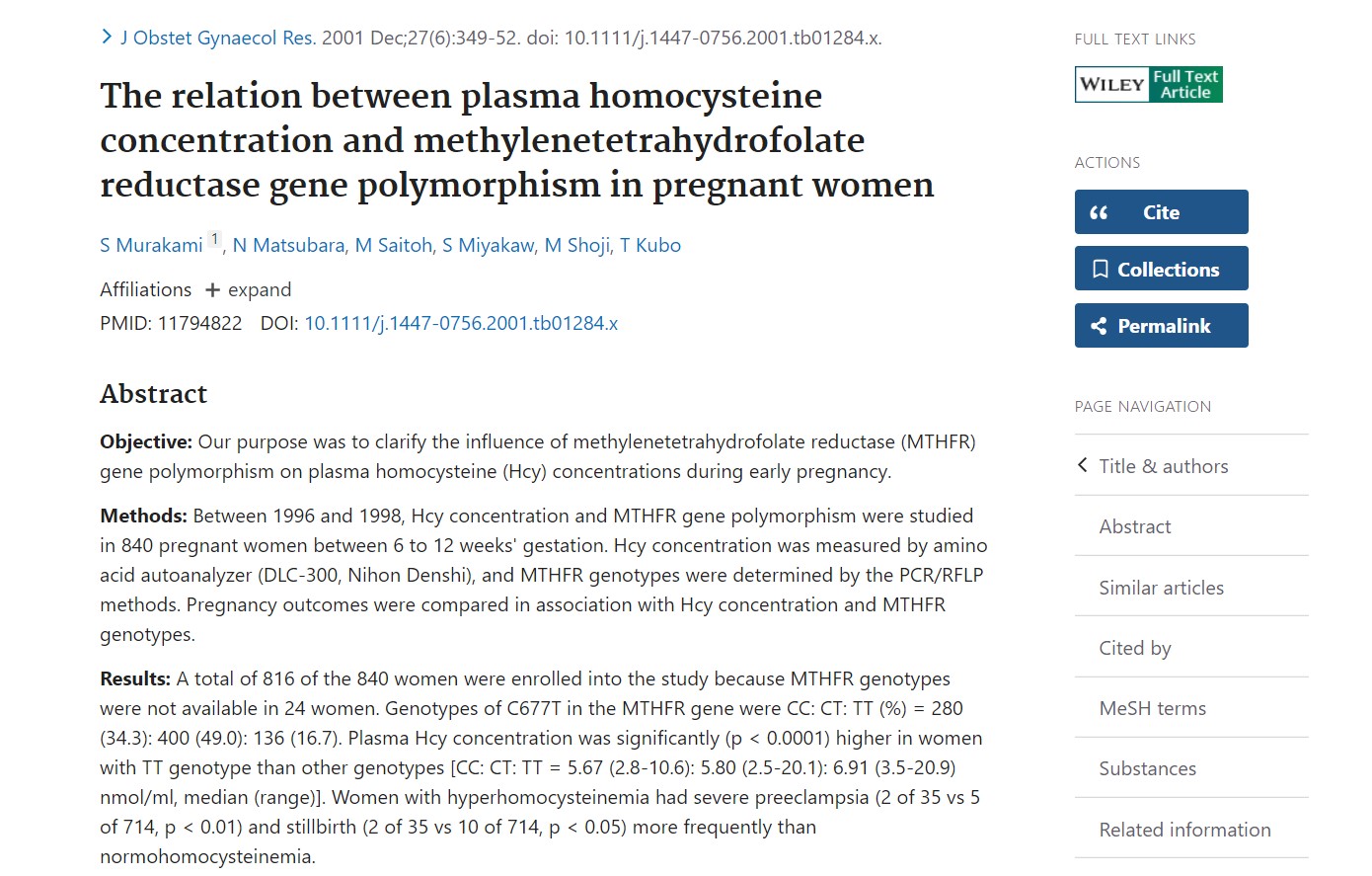 2002. aastal viidi läbi suur Jaapani kohortuuring (840 naised, 6–12 rasedusnädalat) avaldati ajakirjas The Journal of Obstetrics ja Günekoloogiauuringud tugevdasid ahelat: TT → Hcy tõus → ebasoodne rasedus tulemusi.