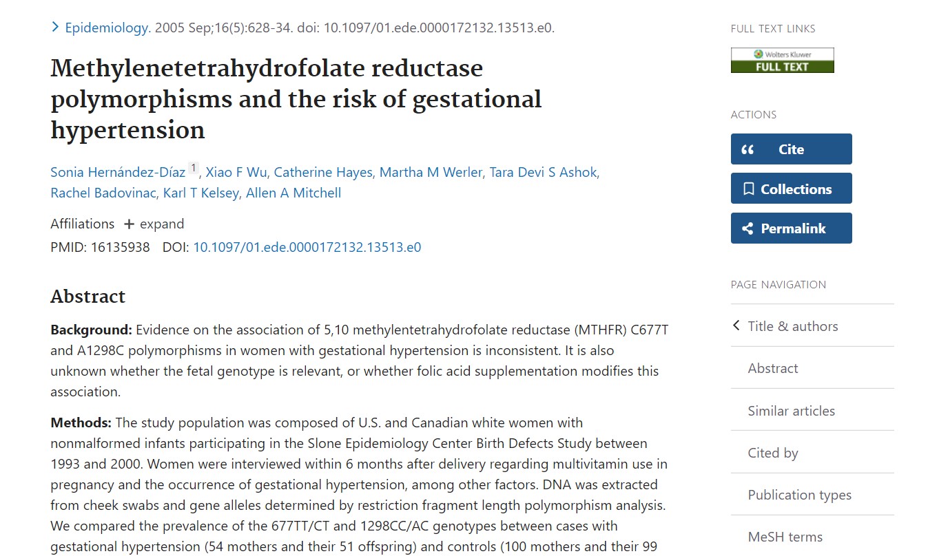 Hayes C, et al.Metüleentetrahüdrofolaatreduktaasi polümorfismid ja