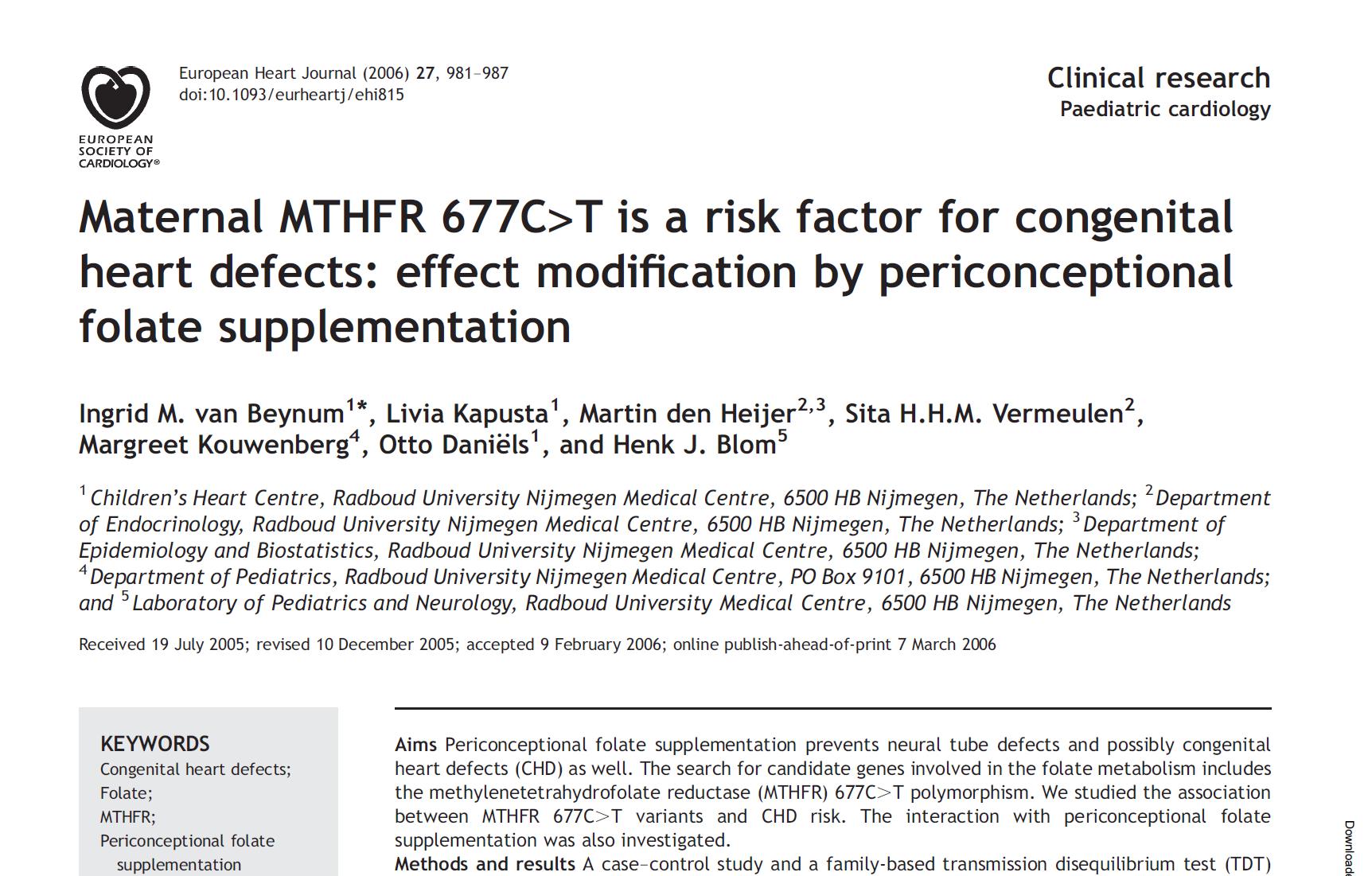 1. van der Put NM, Steegers-Theunissen RP, Lindemans J et al. Ema MTHFR 677C>T on kaasasündinud riskitegur südamedefektid: toime modifitseerimine perikontseptsionaalse folaadi lisamisega. Eur Heart J. 2006.
