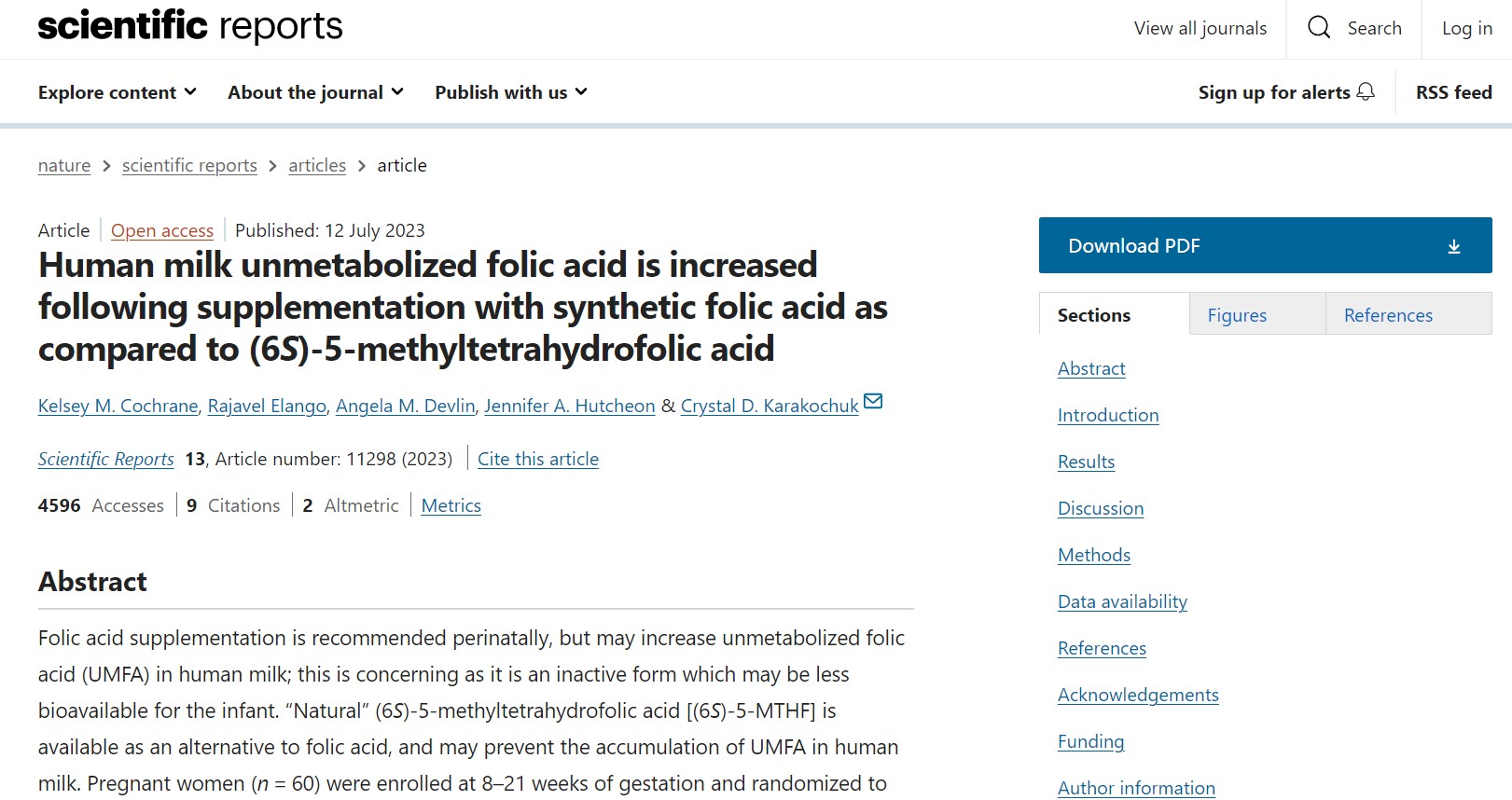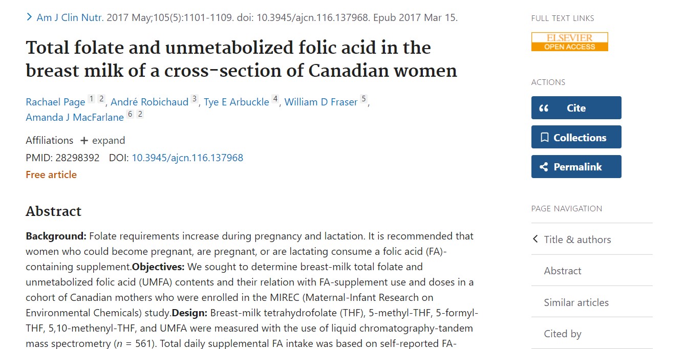 Lehekülg R et al. Kanada naiste rinnapiima kogu foolhape ja metaboliseerimata foolhape. Am J Clin Nutr 2017;105:1101-9.