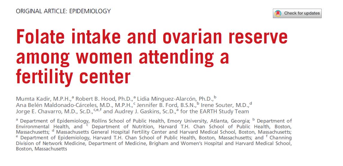 Selles uuringus analüüsiti andmeid 552 naiselt, kes külastasid Massachusettsi üldhaigla viljakuskeskus Ameerika Ühendriikides, keskendudes foolhappe tarbimise ja munasarjade reservfunktsiooni vahelise seose kohta (mõõdetud Antral Follicle Count, AFC).