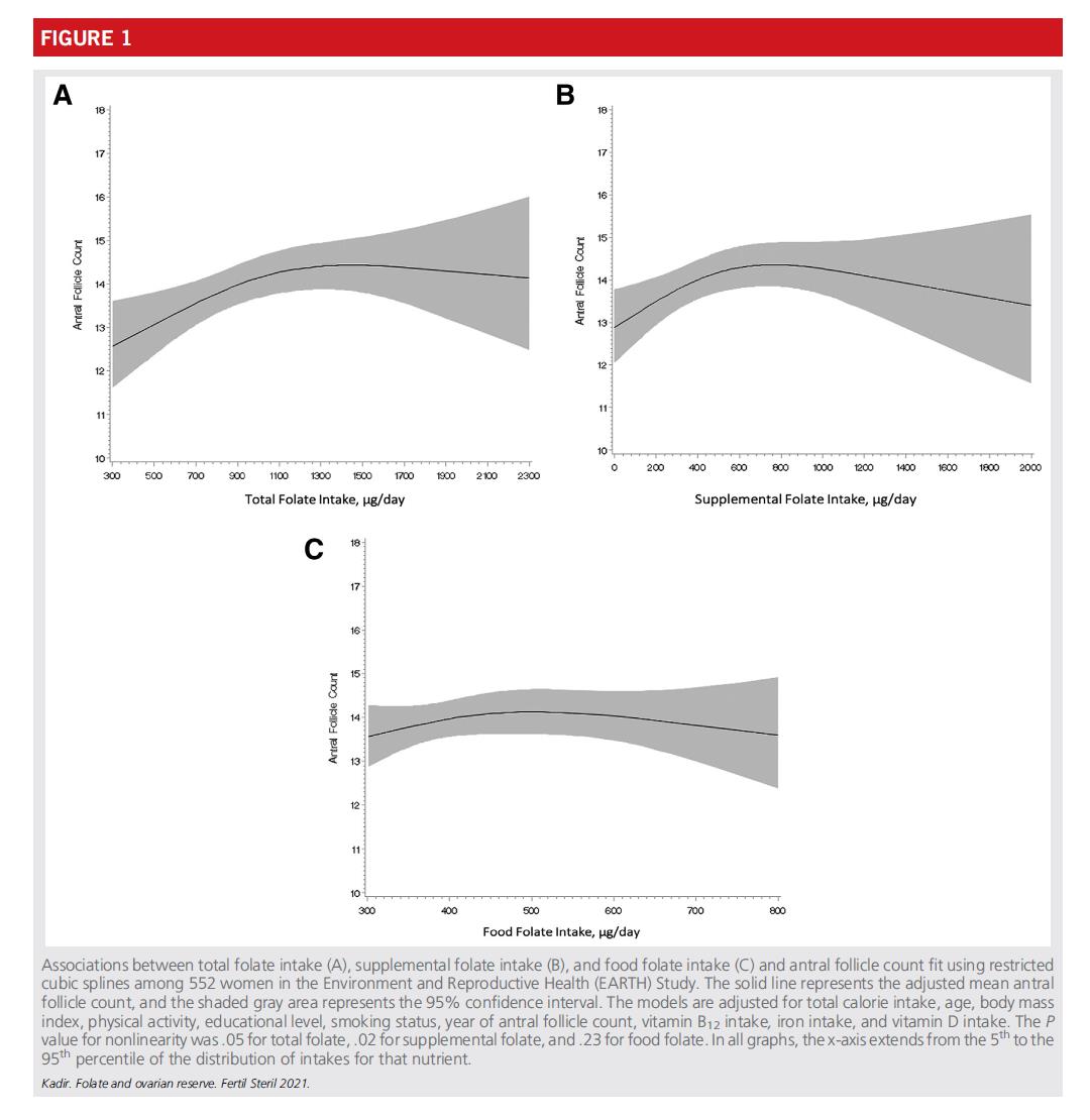 Andmed näitasid, et positiivne korrelatsioon foolhappe kogutarbimine ja AFC saavutab platoo ligikaudu1200 mikrogrammi päevas. Suurim kasu foolhappe tarbimisel toidulisanditest (foolhape, sünteetiline foolhape) esineb umbes800 mikrogrammi päevas. Võrreldes naistega, kellel on igapäevane 400 mikrogrammi foolhappe tarbimine, need, kes tarbivad 800 mikrogrammi päevas eeldatavasti suureneb ligikaudu1,5 folliikulit.