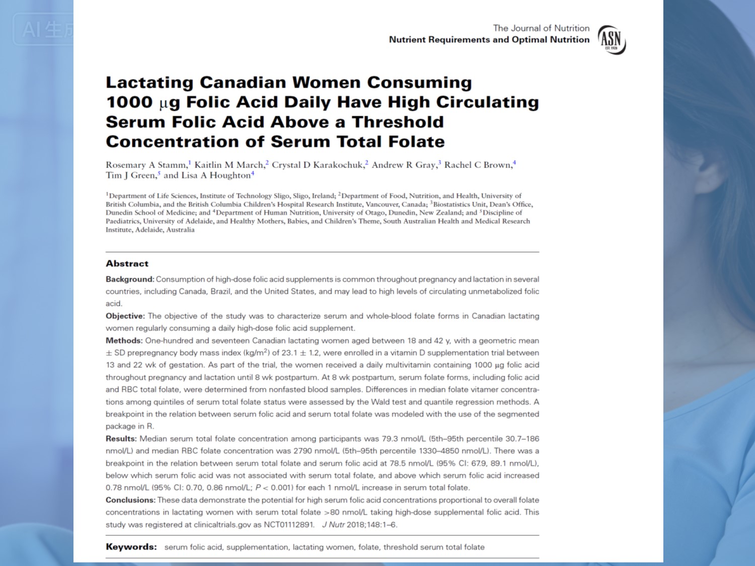 Uuringu järeldus on lihtne: pikaajaline iga päev täiendus 1000 μg foolhapet võib põhjustada peaaegu pooltel imetavatel naistel "Kasutamata ja eritumatu" metaboliseerimata foolhape, mis on vaikselt nendes suspendeeritud vereringesse.