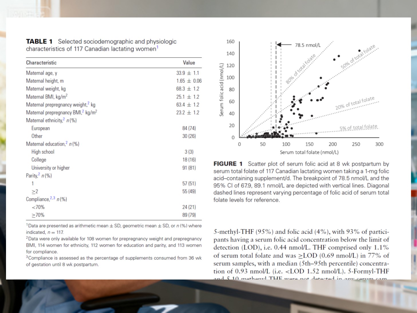 Uuringus osales 117 tervet imetavat naist. Alates raseduse keskpaigast edasi võtsid nad 1000 μg foolhapet pluss 12 μg B-vitamiini1₂iga päev, jätkates kuni 8 nädalat pärast sünnitust. Vereproovid 8 nädalat pärast sünnitust kogutud analüüsiti folaadi vormide suhtes.