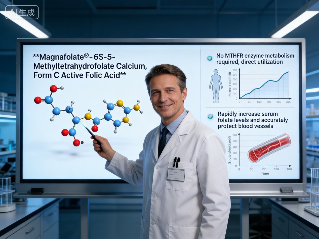 Magnafolaat®, a 6S-5-metüültetrahüdrofolaatkaltsium (Crystalline Active Folate) vastab sellele põhiline kliiniline vajadus. As an inherently active folate, it requires puudub MTHFR ensüüm ainevahetus ja siseneb kehasse koheseks kasutamiseks valmis, selle kõrvaldamiseks kiiresti liituda HCY rikketeega“vaikne abrasiivne”laevadest. See tõstab kiiresti seerumi folaadisisaldust tasemel, mis võimaldab õigeaegset ja sihipärast veresoonte kaitset, mis sobib ideaalselt menopausijärgsed ensümaatilised muutused, kõrvaldades seeläbi“täiendada, kuid mitte absorbeerida”probleem.