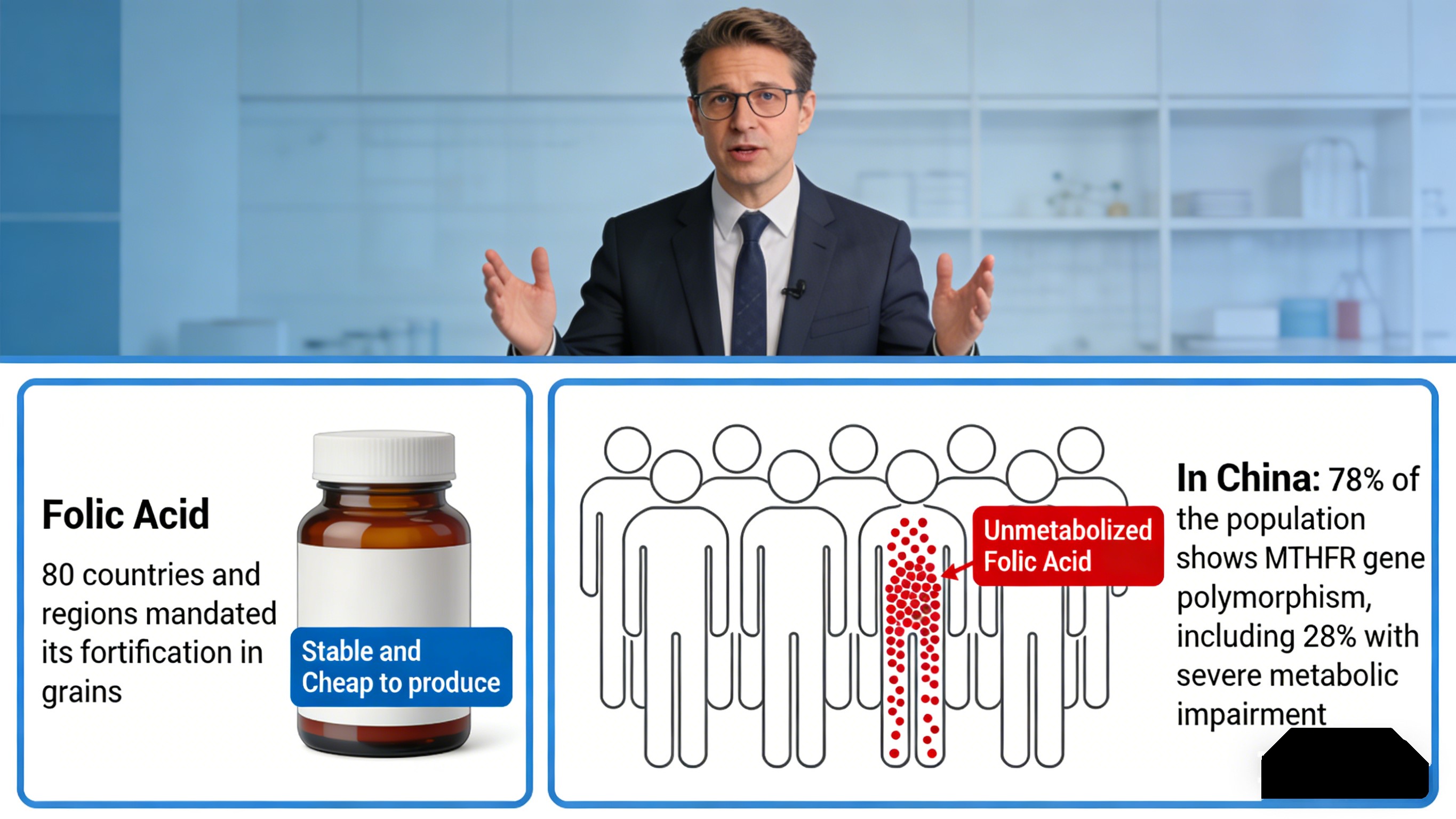 Praktikas ligi 30% hiinlastest ei suuda foolhapet tõhusalt muundada, mis toob kaasa ebatõhusa toidulisandi ja metaboliseerimata foolhappe võimalik kogunemine, mis võib varjata B12-vitamiini puudust ja häirivad tsingi imendumist. Ettevõtete jaoks tähendab see tarbijakaebused ja maineriskid.