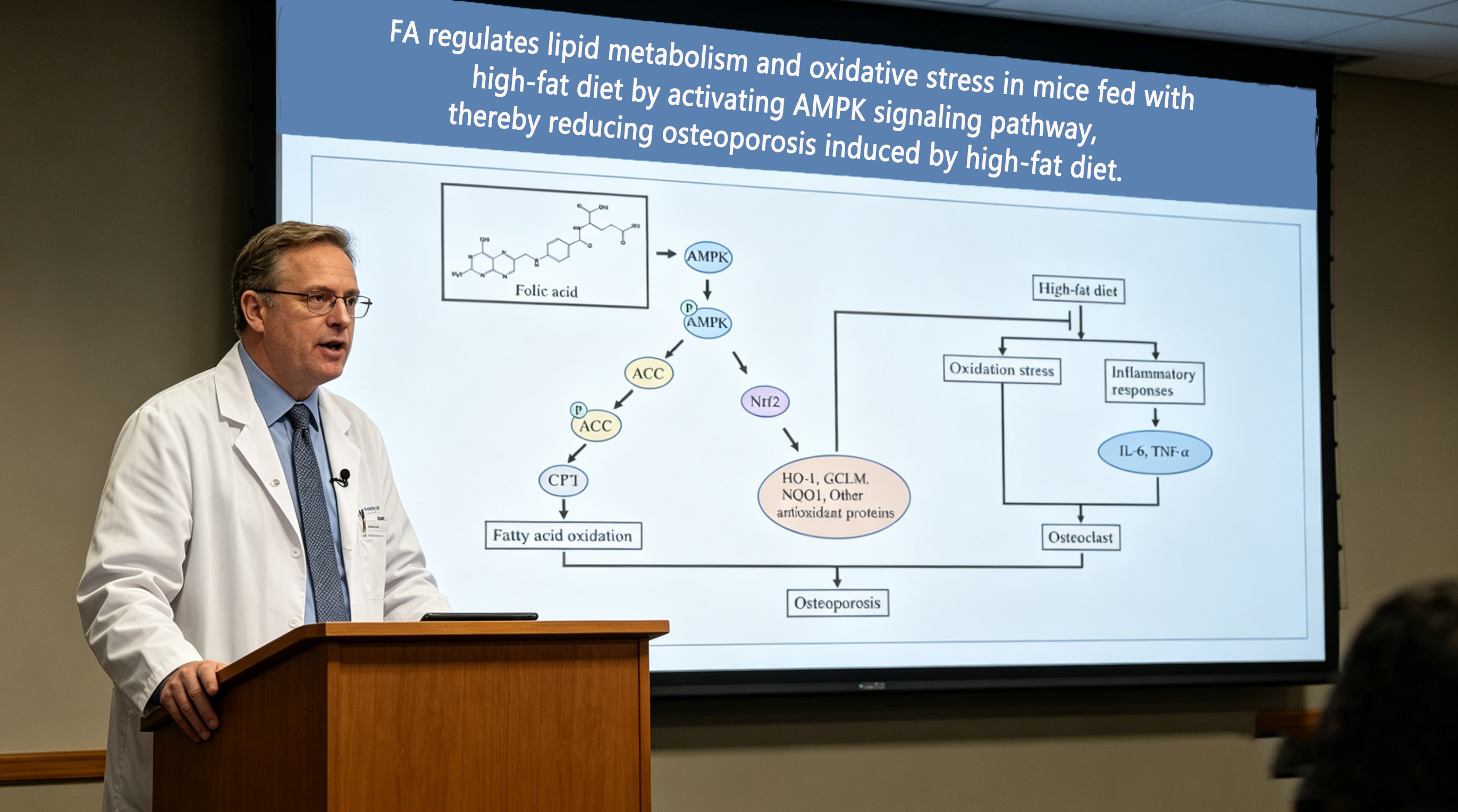 2022. aastal avaldas *Frontiers in Cell and Developmental Biology* uuringu pealkirjaga *Foolhape nõrgendab kõrge rasvasisaldusega dieedist põhjustatud osteoporoosi AMPK signaaliraja kaudu*. Lihtsamalt öeldes nõrgestab kõrge rasvasisaldusega dieet luid ja foolhape võib AMPK raja kaudu seda protsessi leevendada.